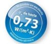 Valor Uw 0,76 W/m²K con vidrio 0,55 W/m²K